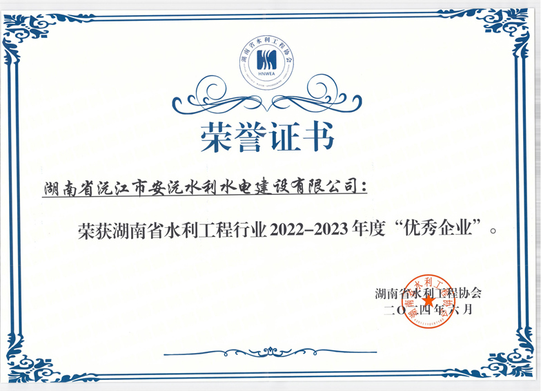 - 2024-06-29 安沅公司榮獲湖南省水利工程行業“優(yōu)秀企業
